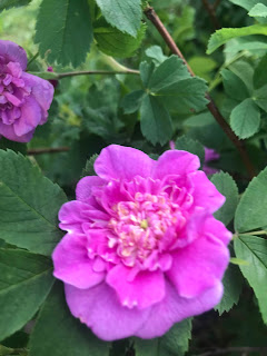Ilokseni törmäsin tänään tähän taivaanvanhaan maamonruusuun. Nimen joku joskus minulle osasi kertoa, minä vain senkin jo unohdin. Kyseessä on joku vanha venäläinen ruusu jonka taimen kuokimme muutama vuosi sitten Joutenvaaran mummolan raunioista. Ihana tuoksu, todella vahva ja ruusuinen. Monena kesänä tämä kukinta on jäänyt huomiotta, onneksi nyt olen paikalla. Pitää pikkuisen perata tälle ihanuudelle parempaa kasvupaikkaa, ainakin kärrään vähän tallin antimia juurille. On nimittäin pala historiaa tällä ruusulla kannettavanaan. Ilmankos nuokkuu.